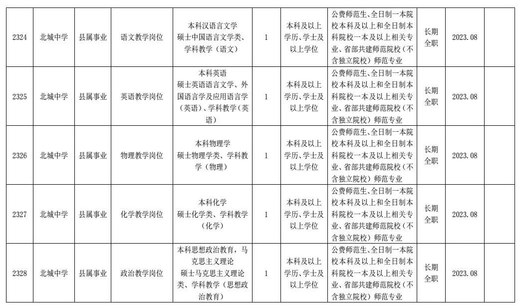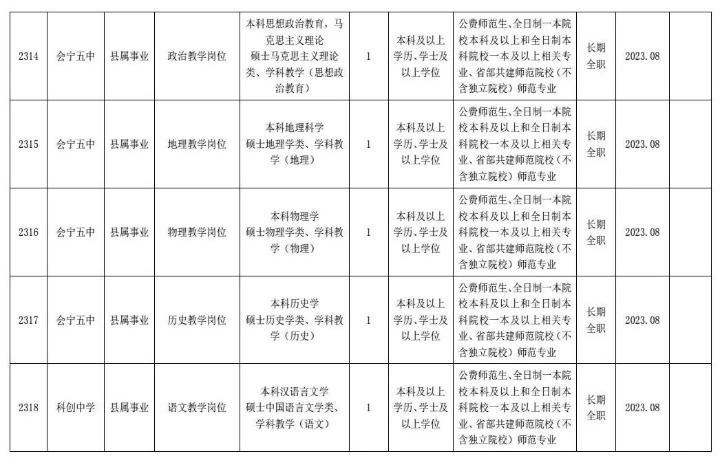 附件:1.2023年会宁县教育系统急需紧缺人才引进岗位条件表