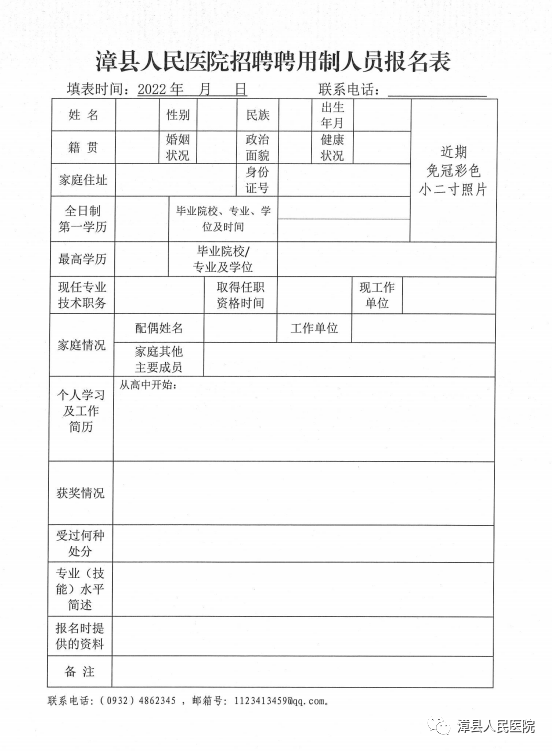 附件:《漳县人民医院招聘聘用制人员报名表》