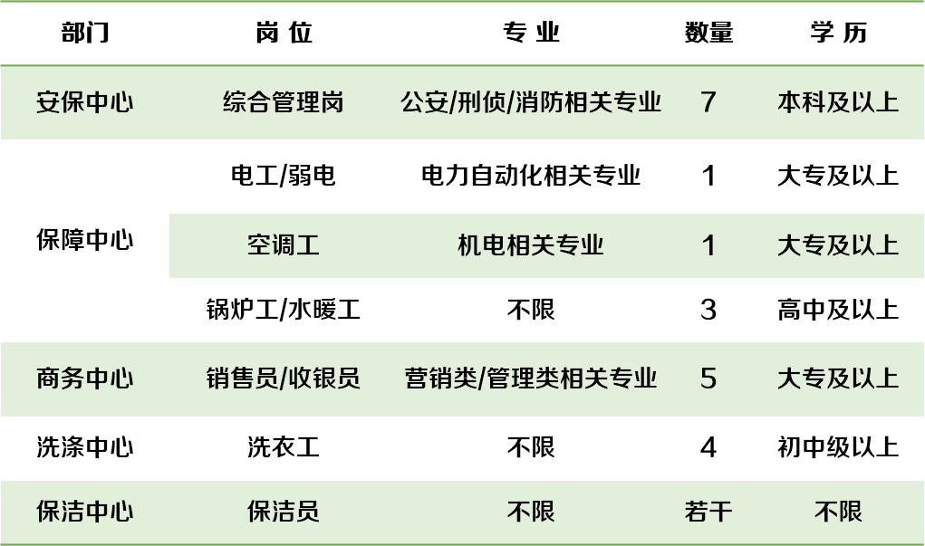 2.安保中心岗位:有入伍经历的人员,学历条件可放宽至大专及以上;